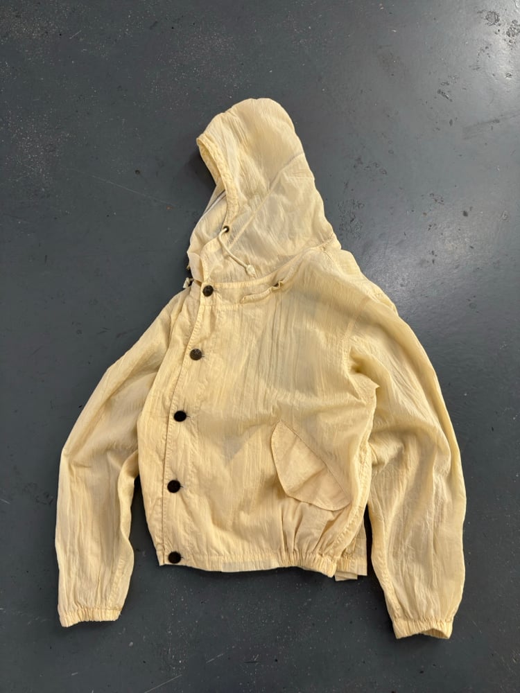 Missing zipper on collar to conceal hood.