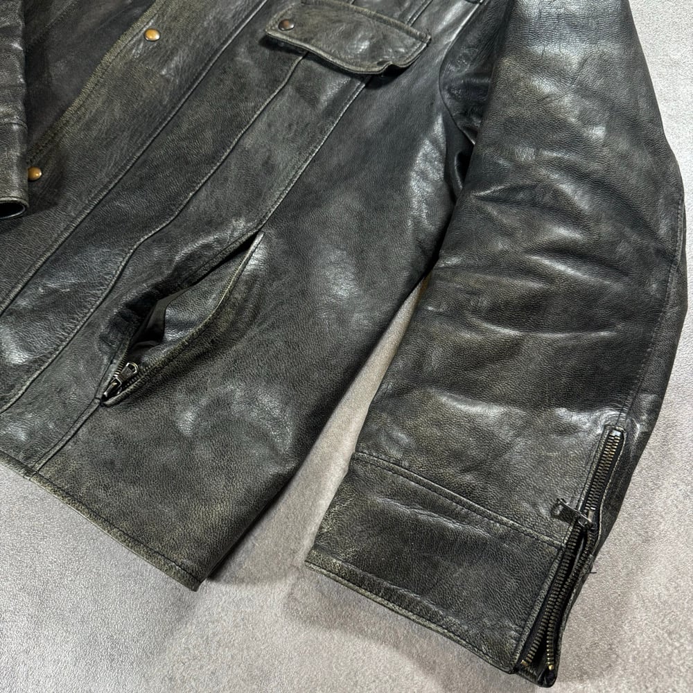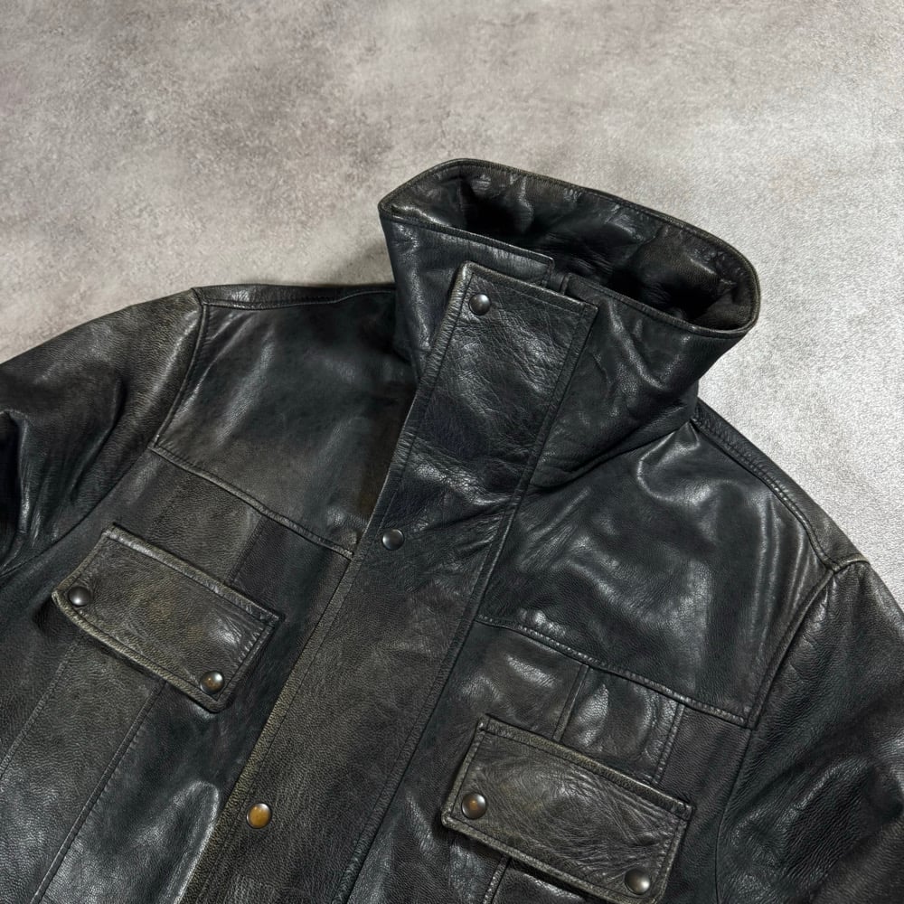 1990s High Collar Leather Jacket, Size Large