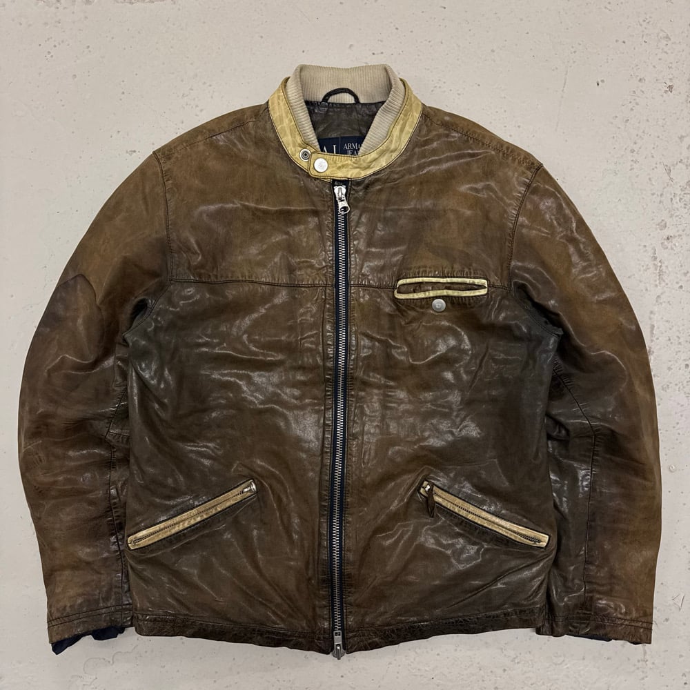 2000s Armani Jeans Leather Jacket, Size Medium